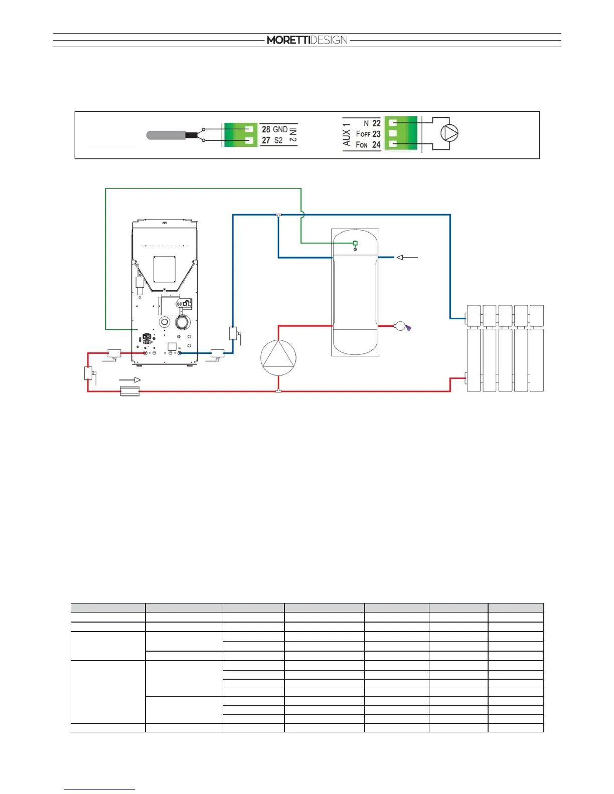 • In Summer mode and working on Pellet, the Pump (P1) is activated above the thermostat T21. In all other cases the Pump (P1) is activated if