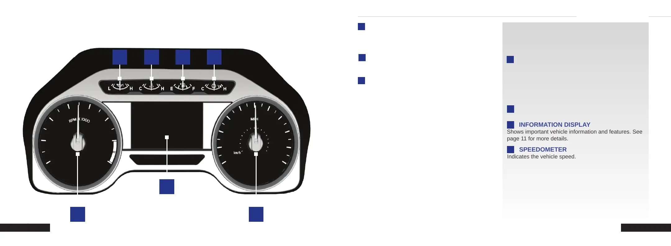 Shows important vehicle information and features. See