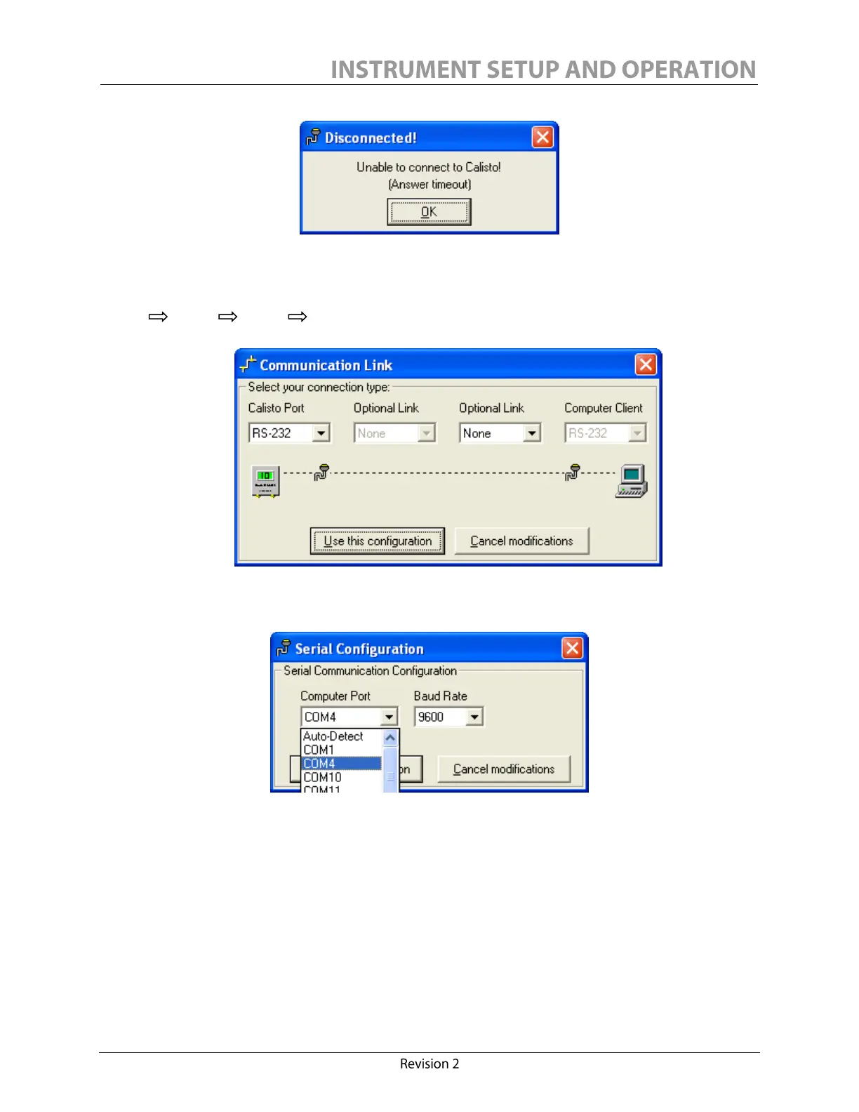 Be sure that in the Communication Link window the configuration is as follows: