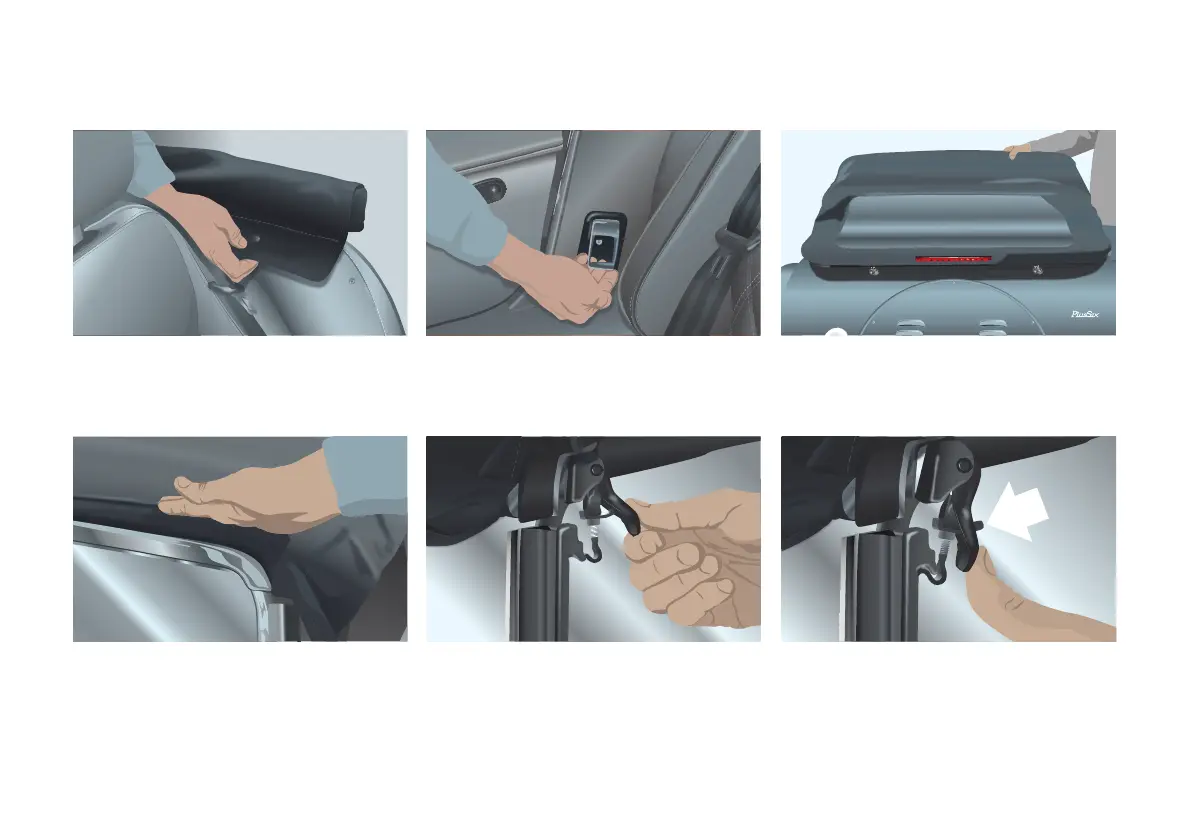 Remove hood cover if fitted (see Hood cover fitting). Inside: Locate the rear hood rail release lever next