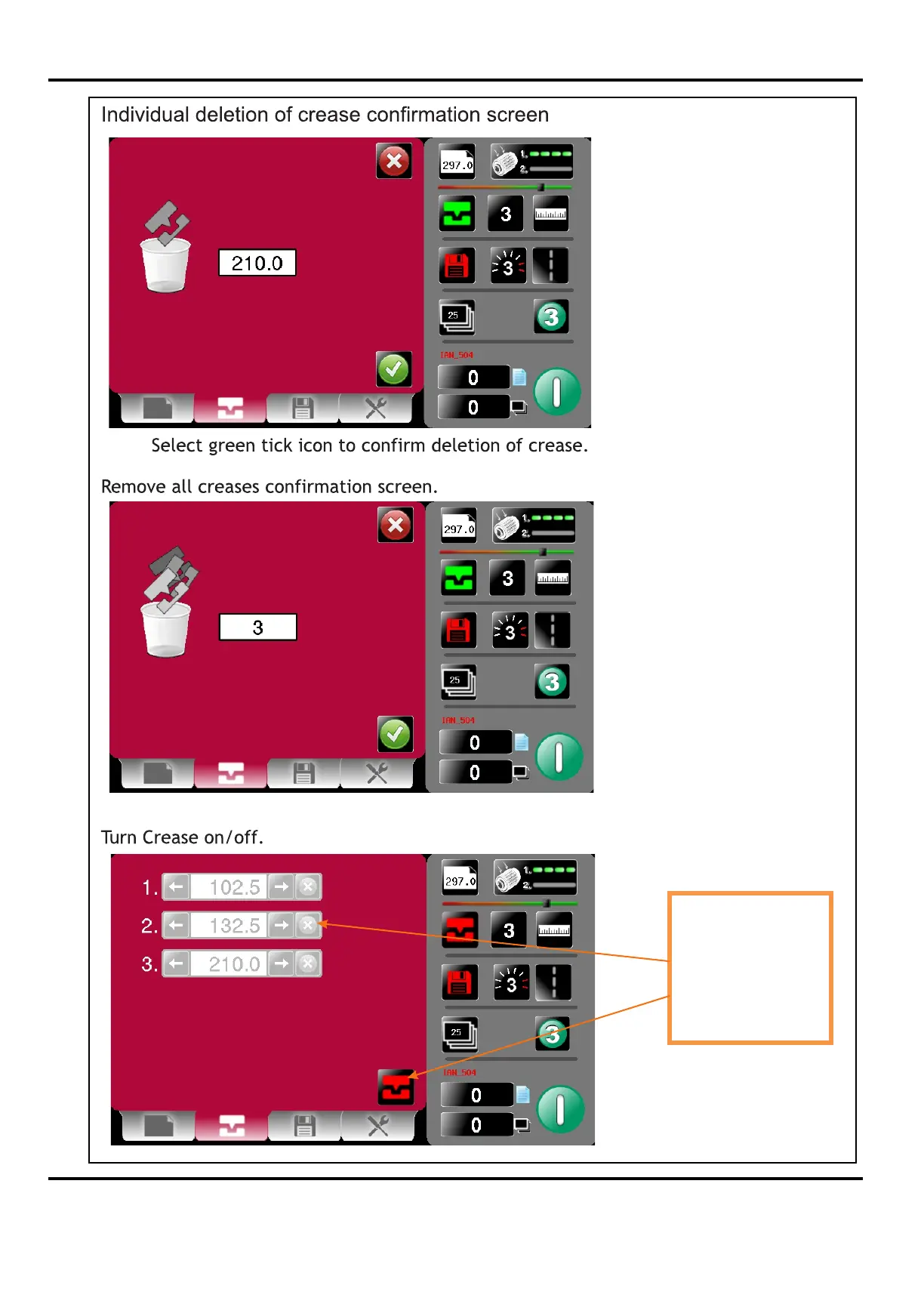 by ± 0.1 mm increments by pressing side arrow buttons for each crease.