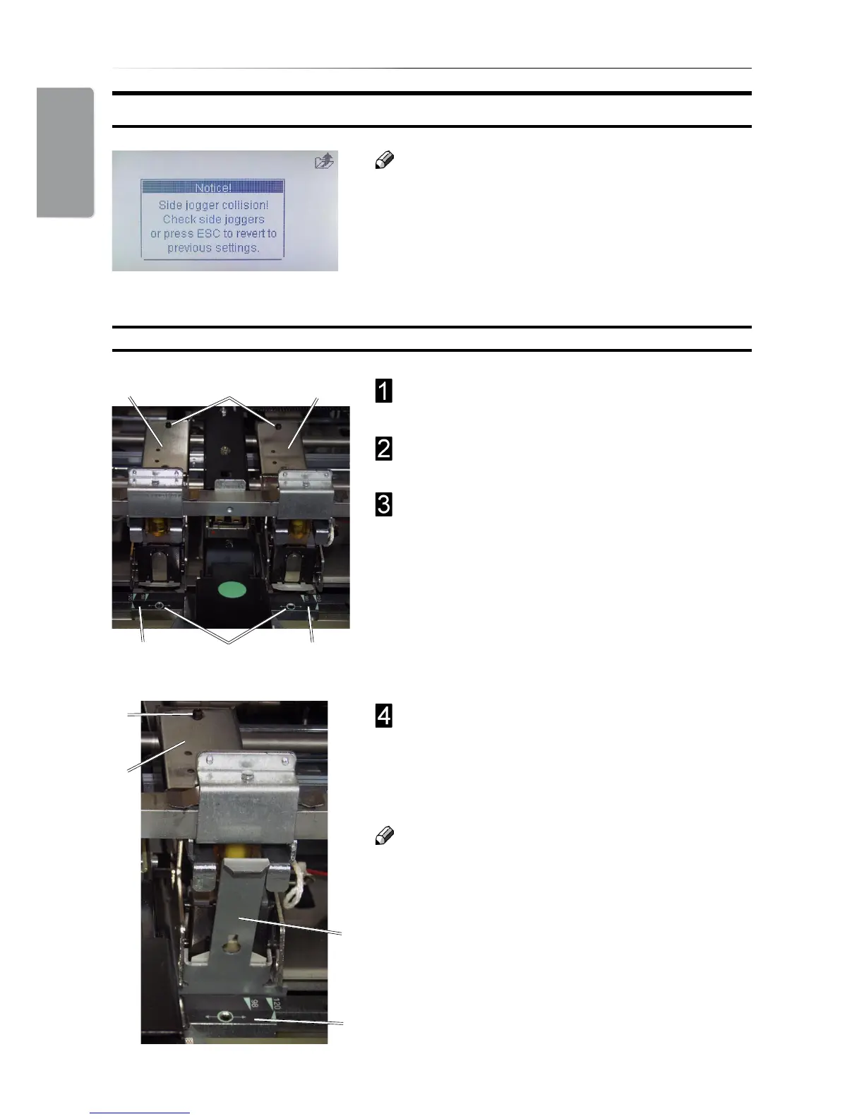 jogger collision. Check side joggers. Width setting