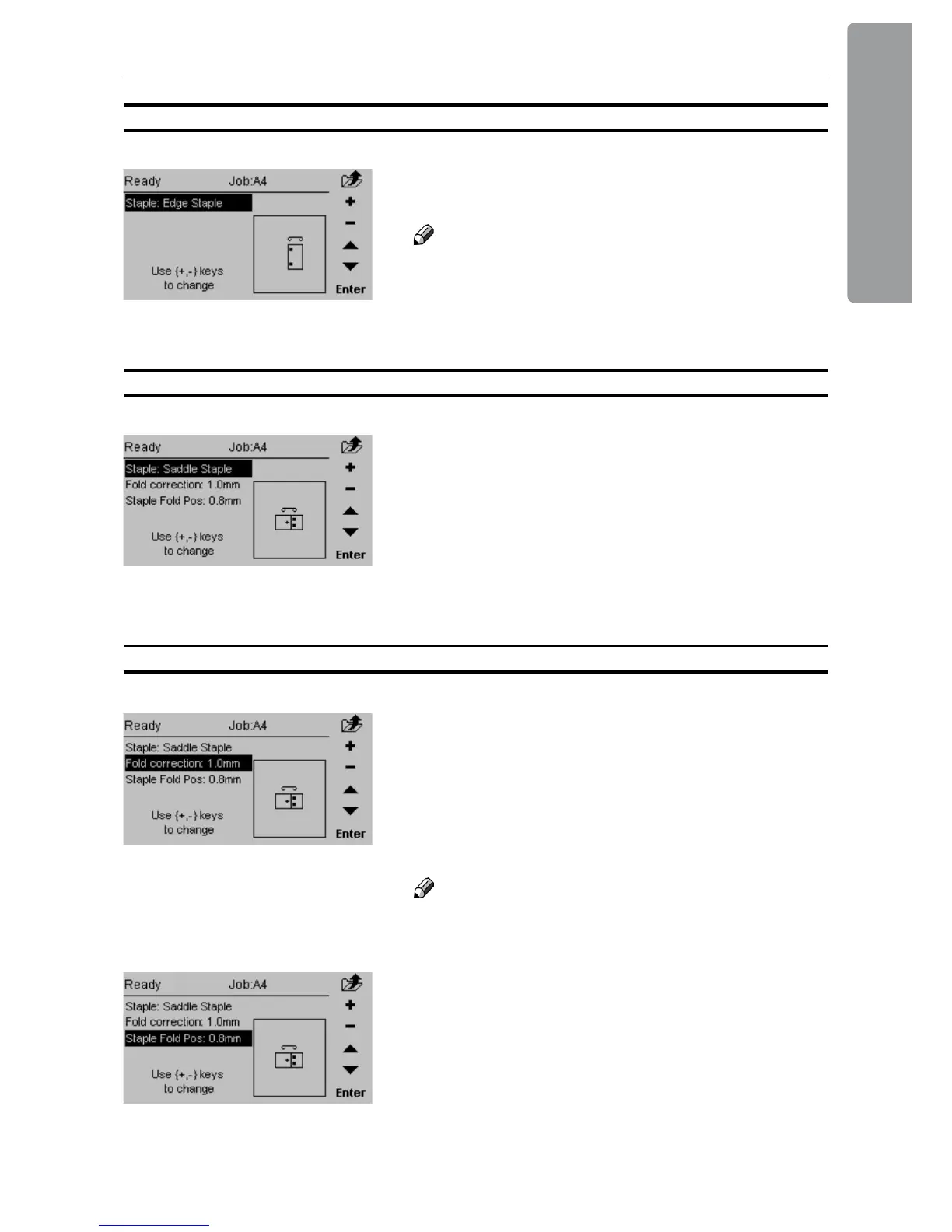 With Staple Fold Pos highlighted, press [+] or [-] to
