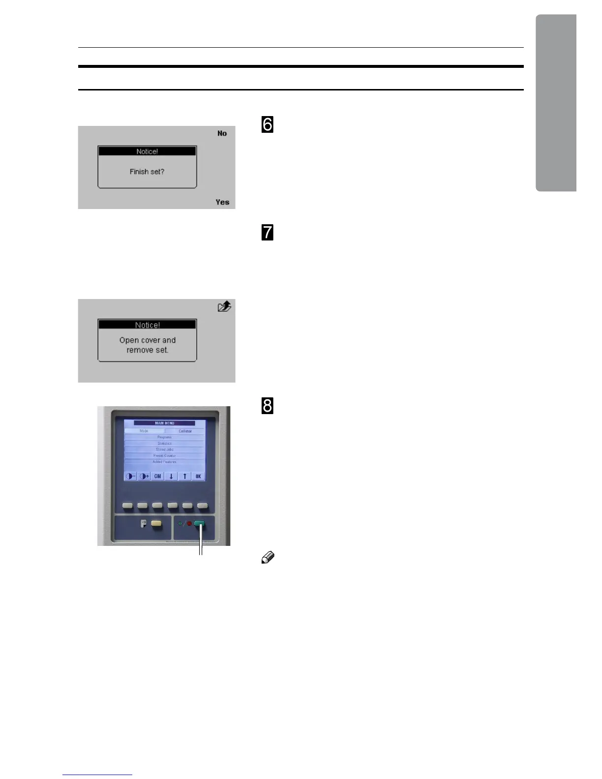 “Finish set?” will be shown in the control panel.