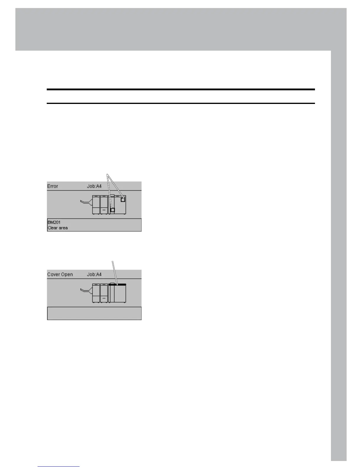 If an error such as a paper jam condition should occur, it is indicated in the control panel