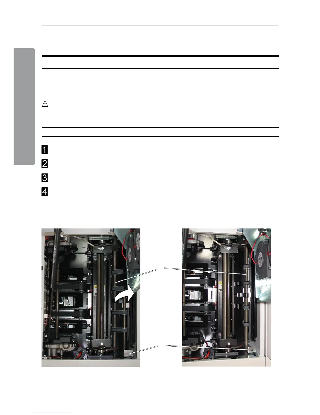 After the jammed sheets are removed, lift up the latch (B) and place the infeed roller