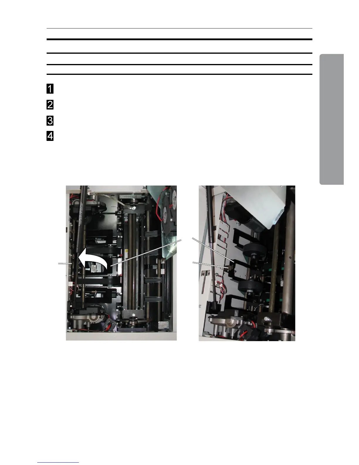 After the jammed sheets are removed, lift up the latch (B) and place the