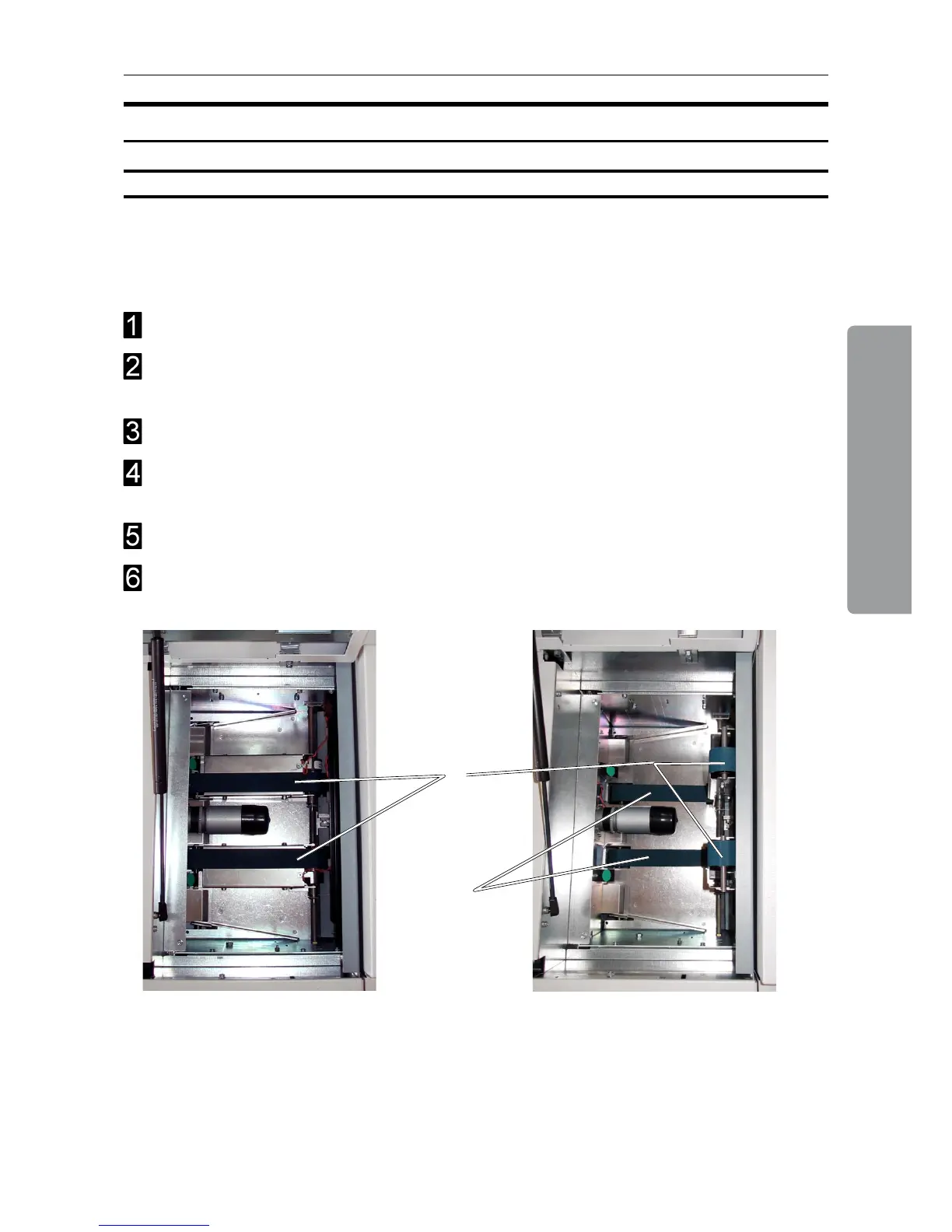 Lift up the upper feed belts to access the lower feed belts.