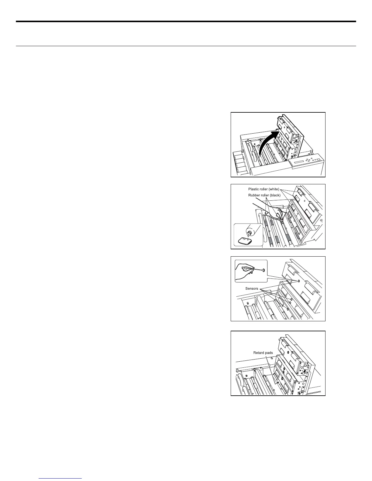 Cleaning the “Paper conveyor retard pads - Paper feed roller - Sensors”