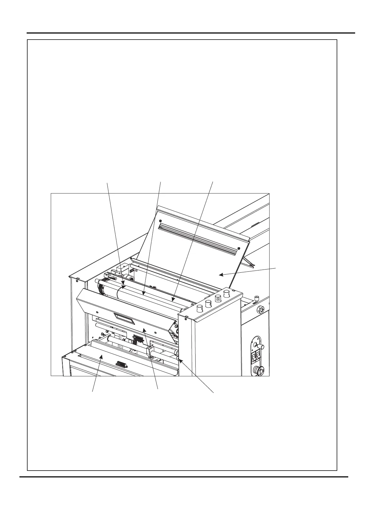 1. Unlock and lower the delivery unit, open the top cover and the perforator unit; see