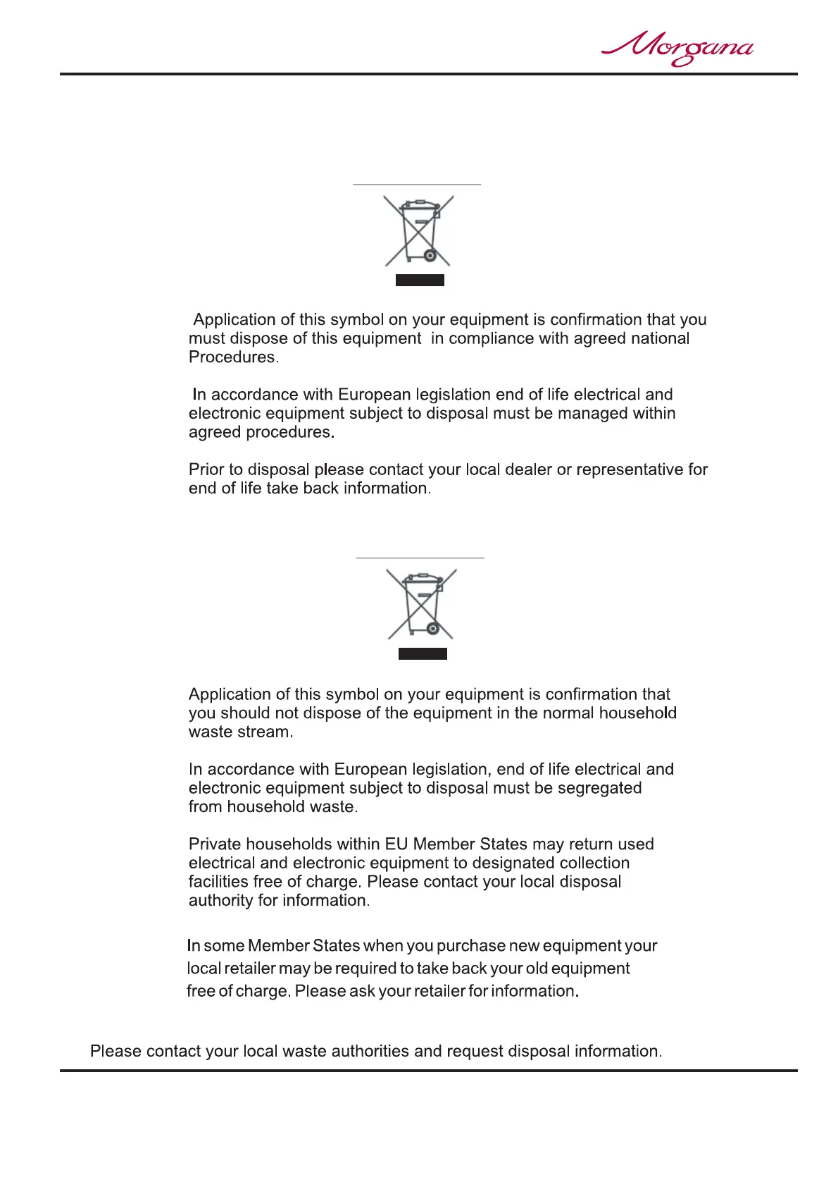 Morgana Digifold 5000P - Product Recycling and Disposal Information; Commercial User Disposal Guidelines; Domestic User Disposal Guidelines; International Disposal Information