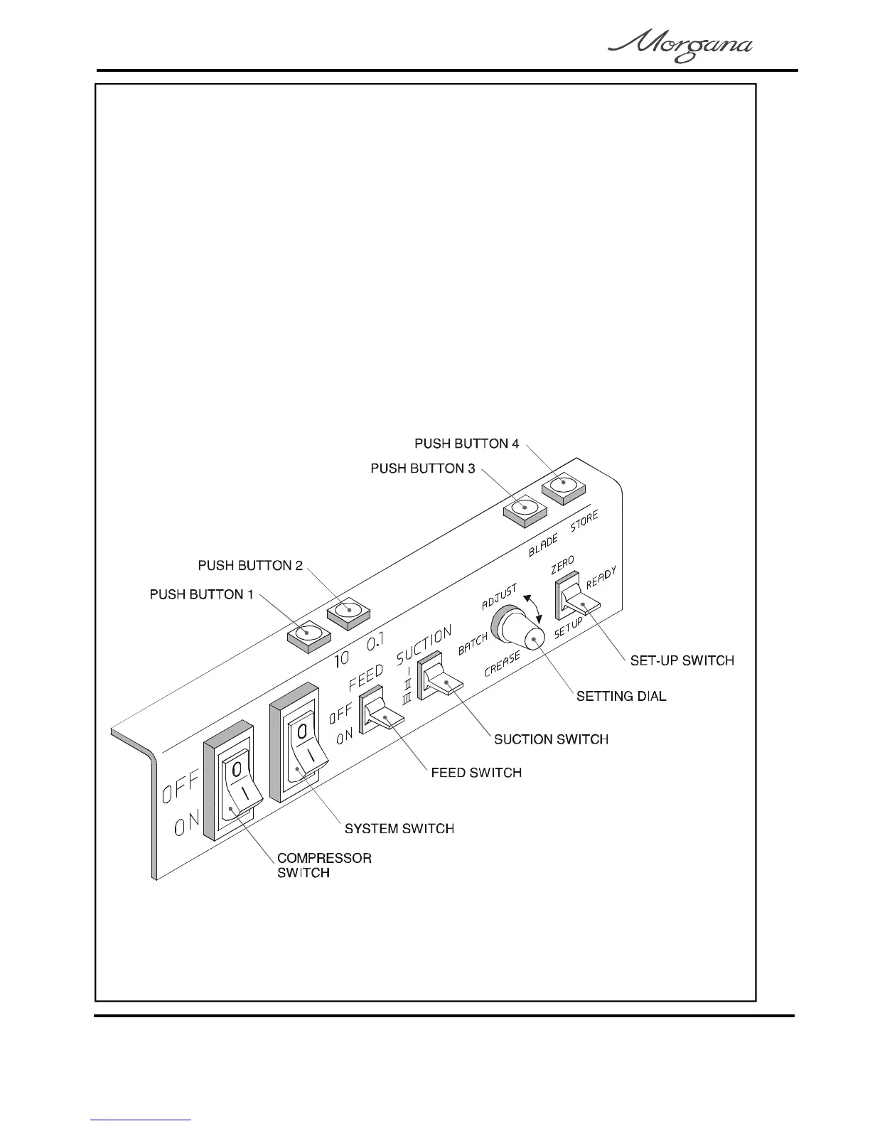 Systemswitch,Feedswitch,Suctionswitch,SettingdialandSet-upswitch.