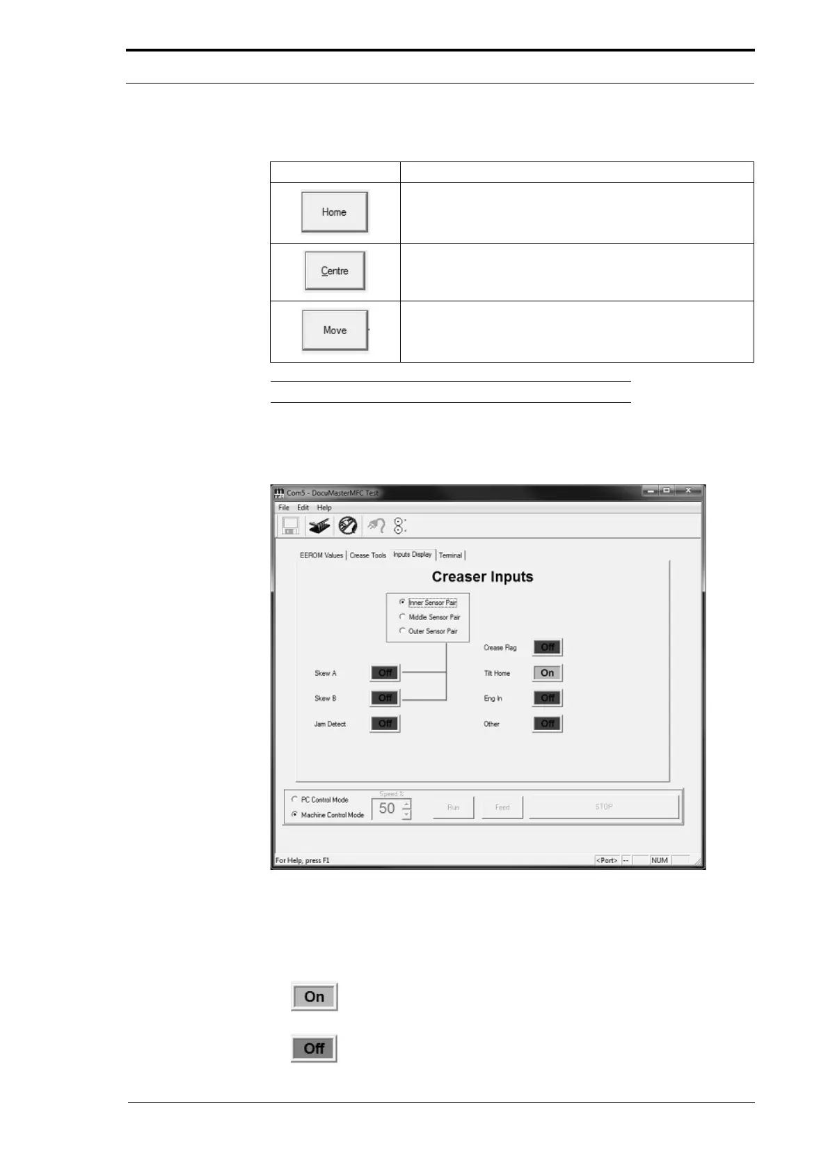 The Inputs Display Page shows the input status of the senors and switches inside the