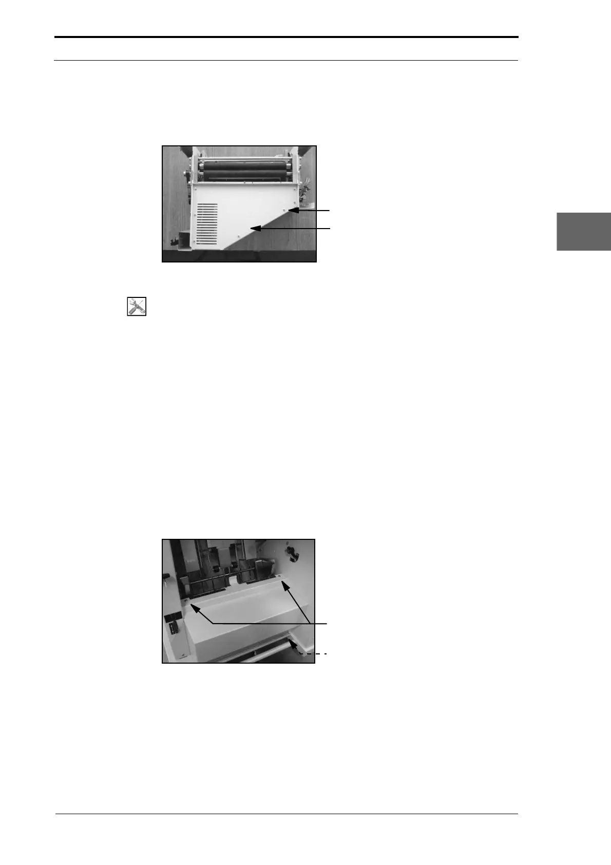 (2) Remove the five screws that attach the motor base-plate cover to the creaser