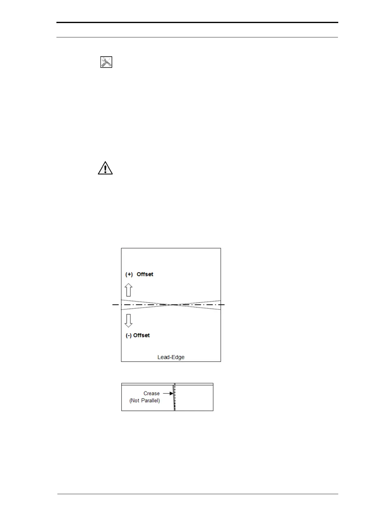The skew-offset trim should be adjusted so that the crease is parallel to the lead-edge