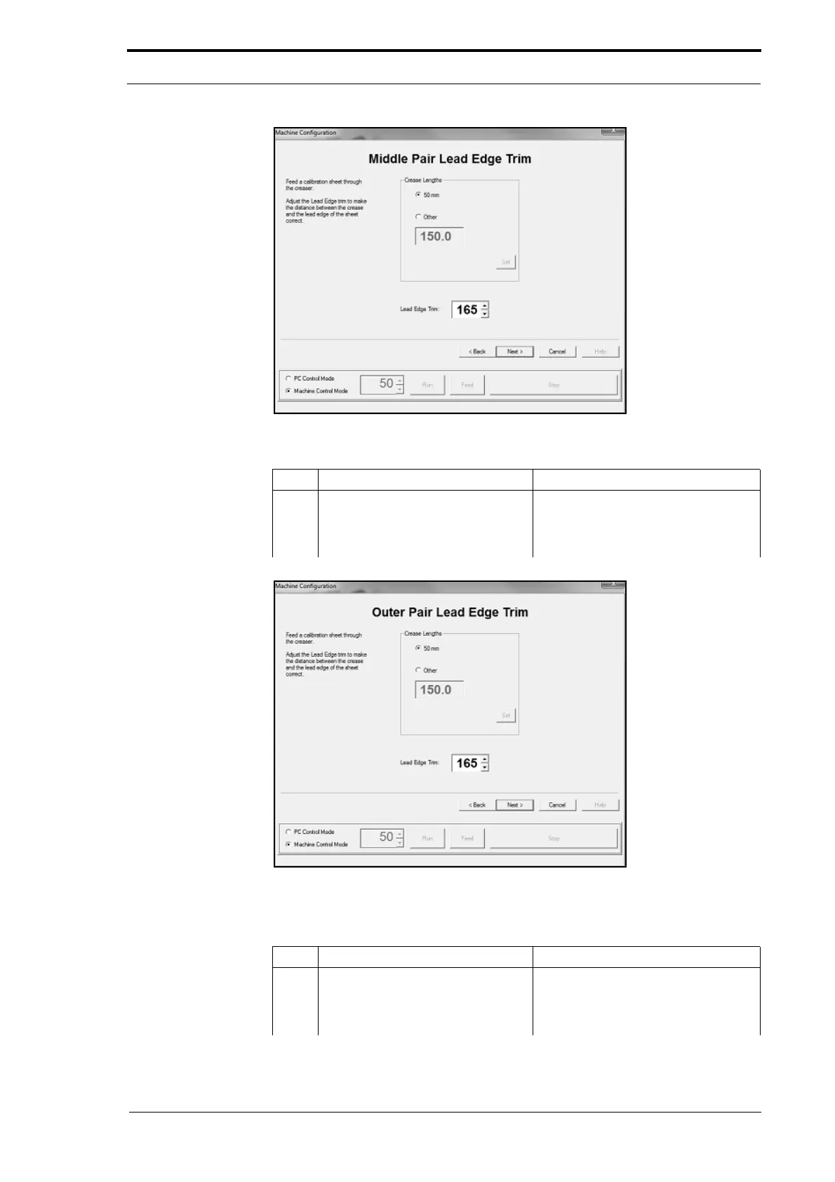 Figure 4.68 The Middle Sensor Pair Lead-Edge Adjustment Page
