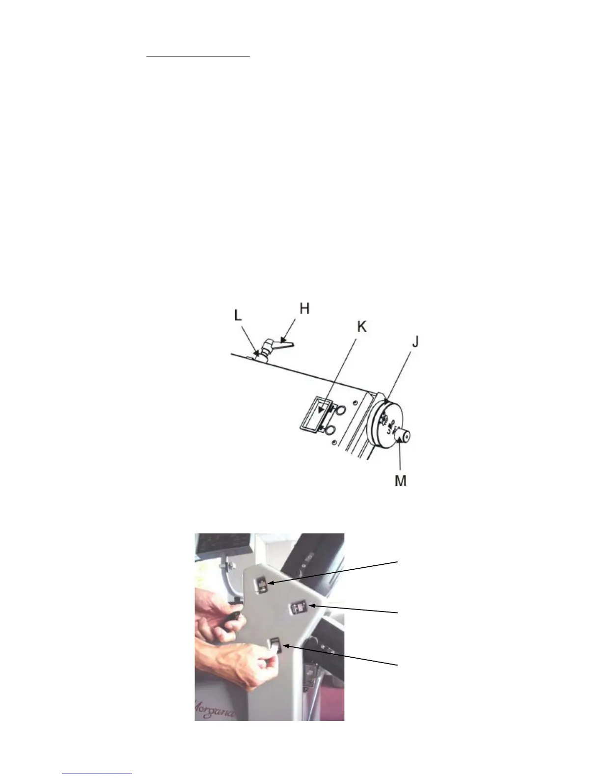 (M) turning dial (J) and re- locking knob (M). Release the lock knob (H) and