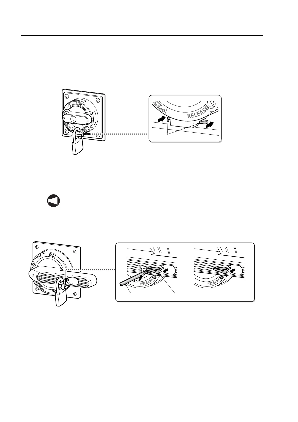 2) While pushing the shutter plates in the direction of arrows, attach a padlock.