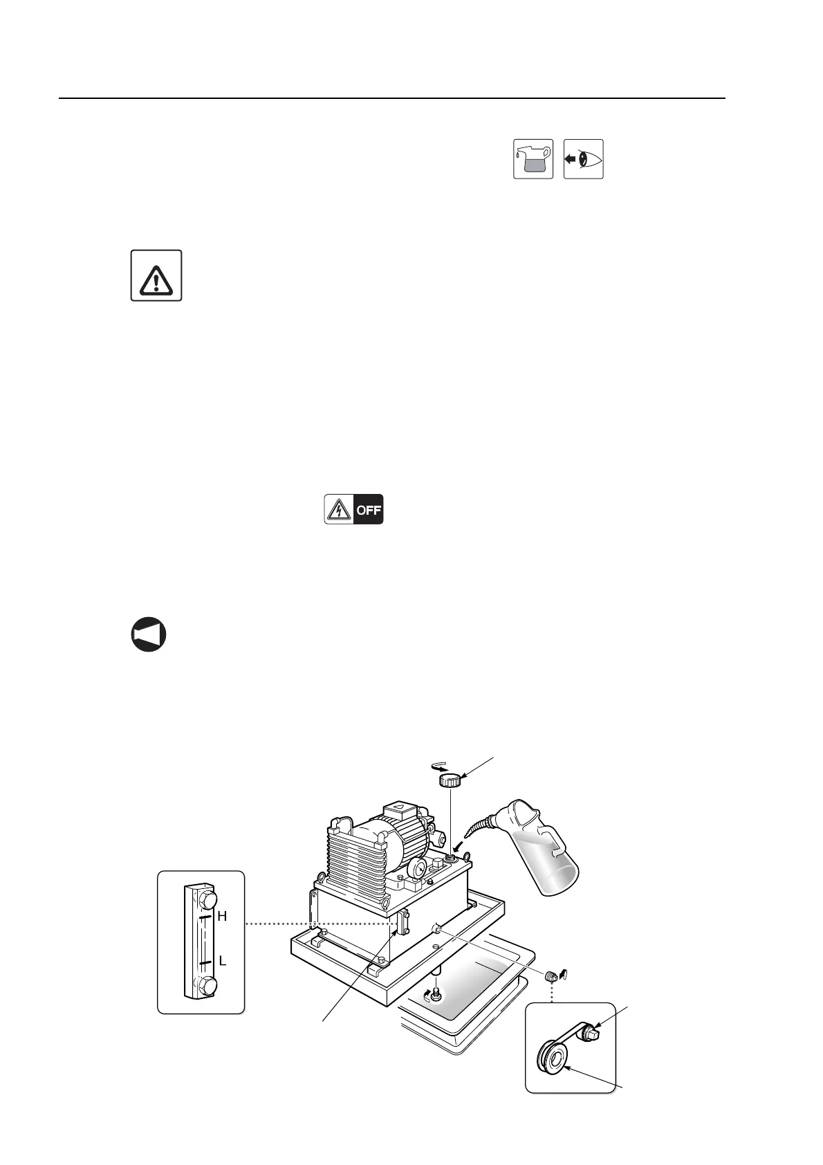 (1) Maintain the oil level of hydraulic fluid in the tank at the correct level; make sure
