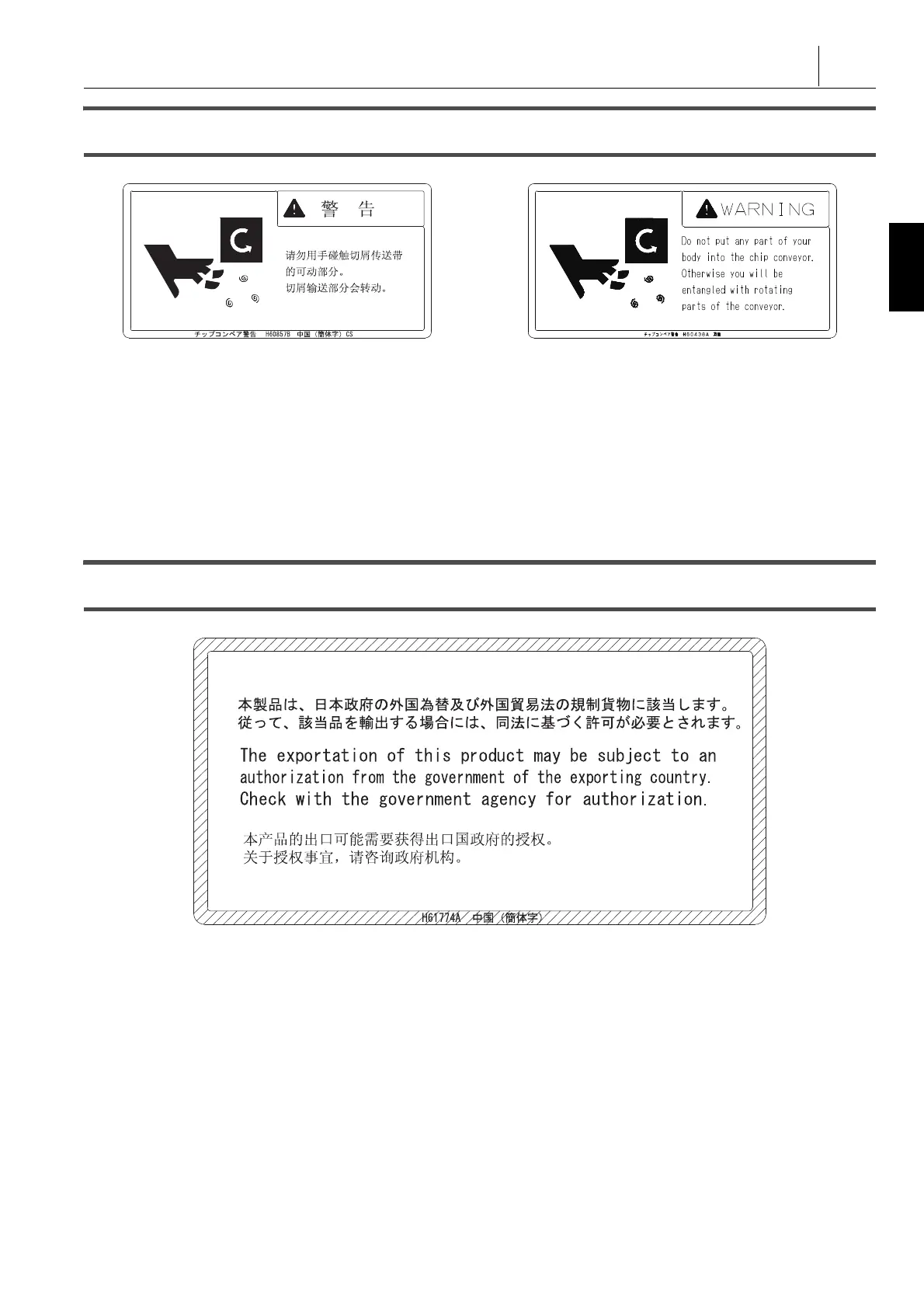 1. 当排屑器运行时,不要试图进入它的内部或将脚踩入。 1. Do not attempt to reach inside the chip conveyor or put