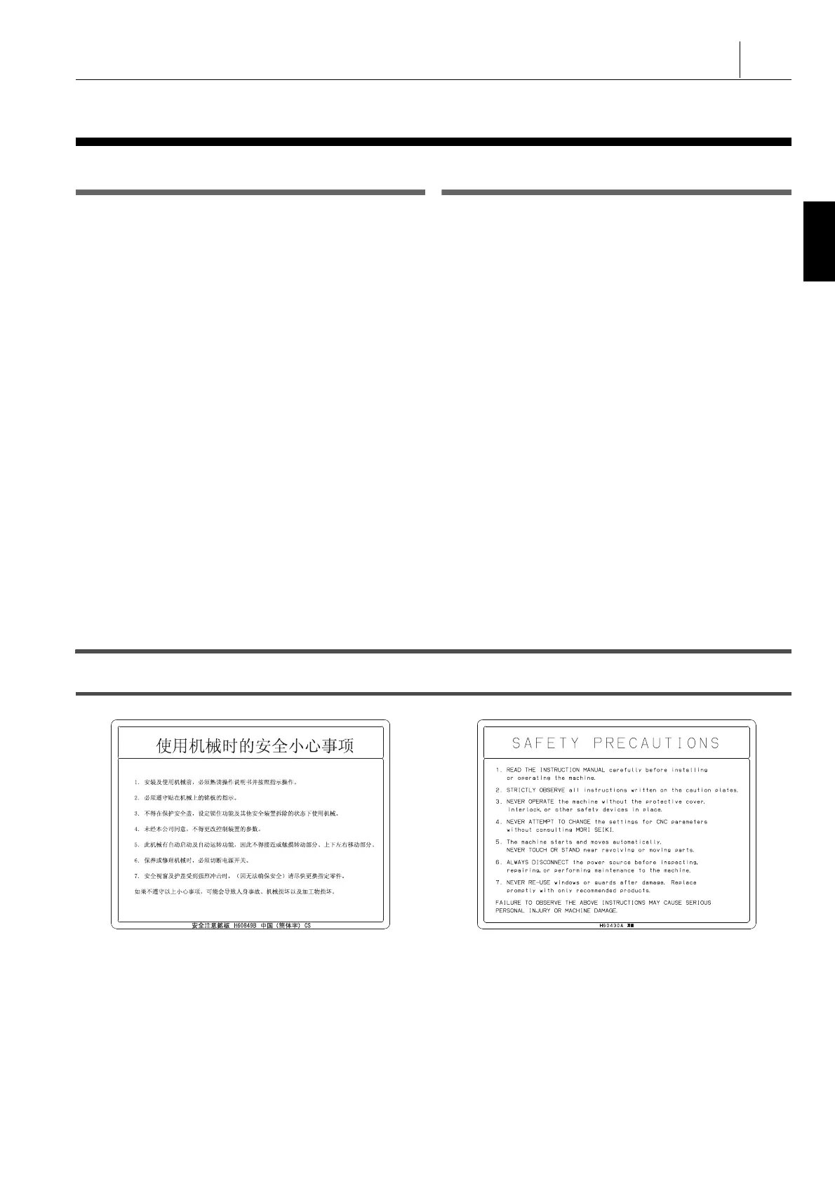 5. 确保粘贴到机床上的警告标签是用操作员母语书写的。 5. Ensure caution labels attached to the machine are