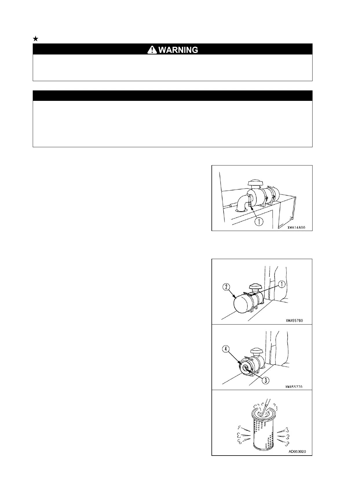 • When using compressed air to clean the element, there is danger that dirt and dust may fly and get into eyes.