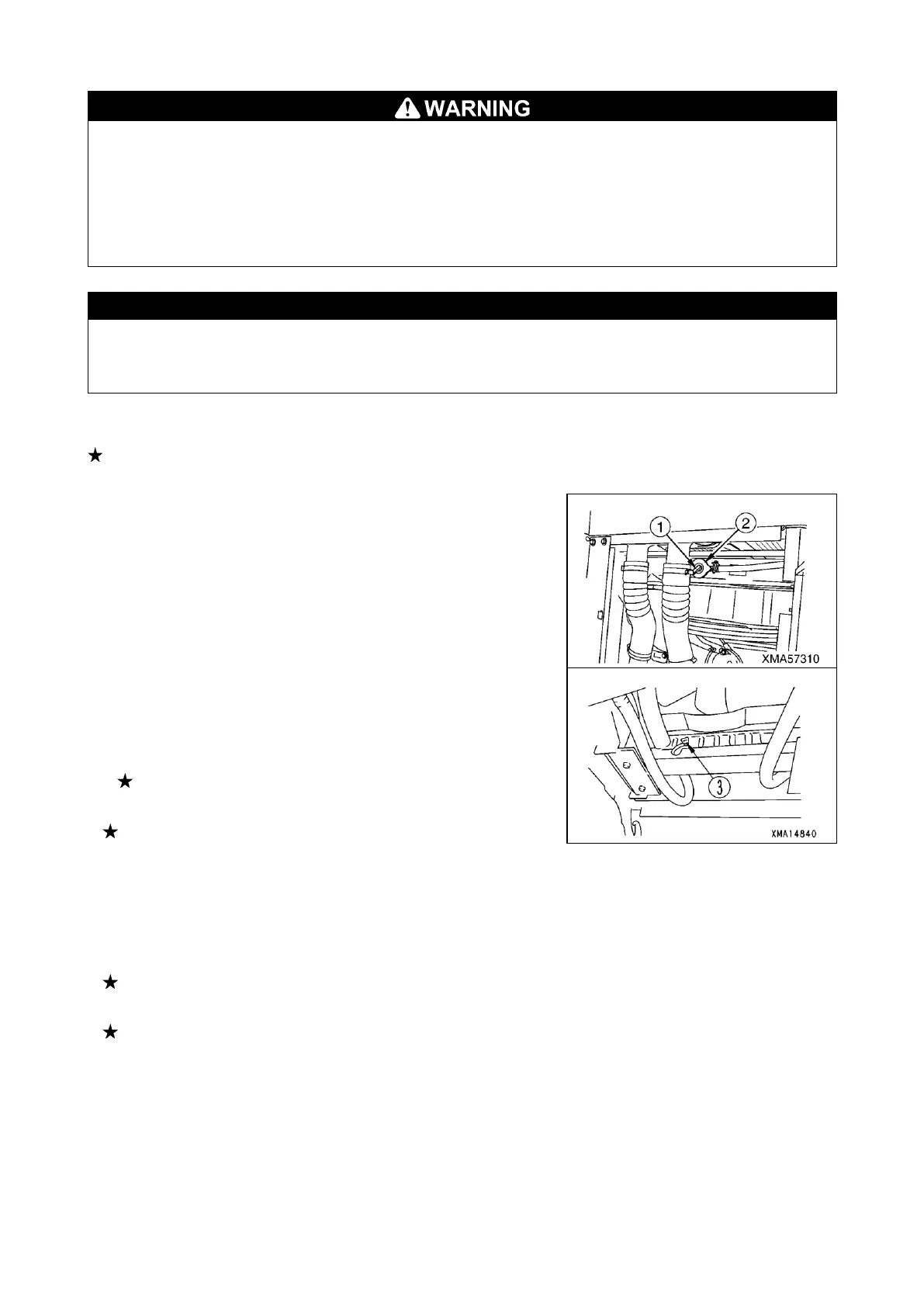 7. Open the two drain valves in Step 5, then start the engine, run at low idling,