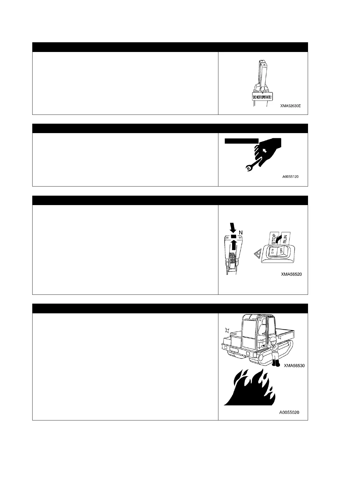 NOT OPERATE ! ” sign (Part No.: 1-41010-1210) on the control lever