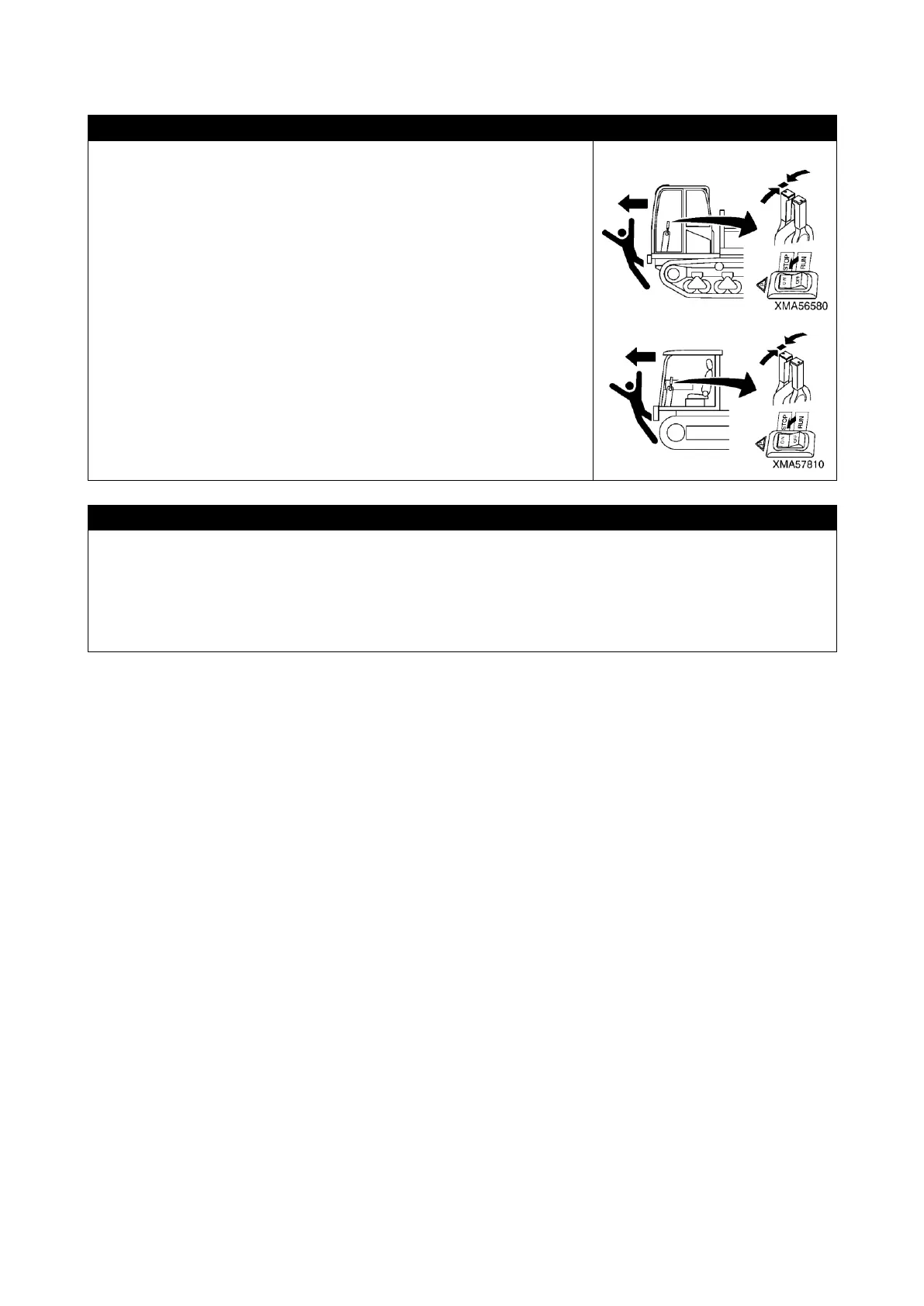 • Never start the engine if a warning tag has been attached to the controls.