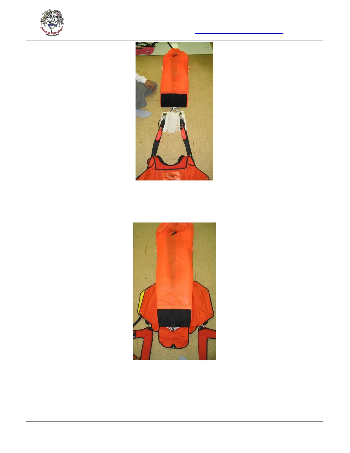 twisted. Lay the tail pocket and canopy flat on the bottom of the pack tray with the rear