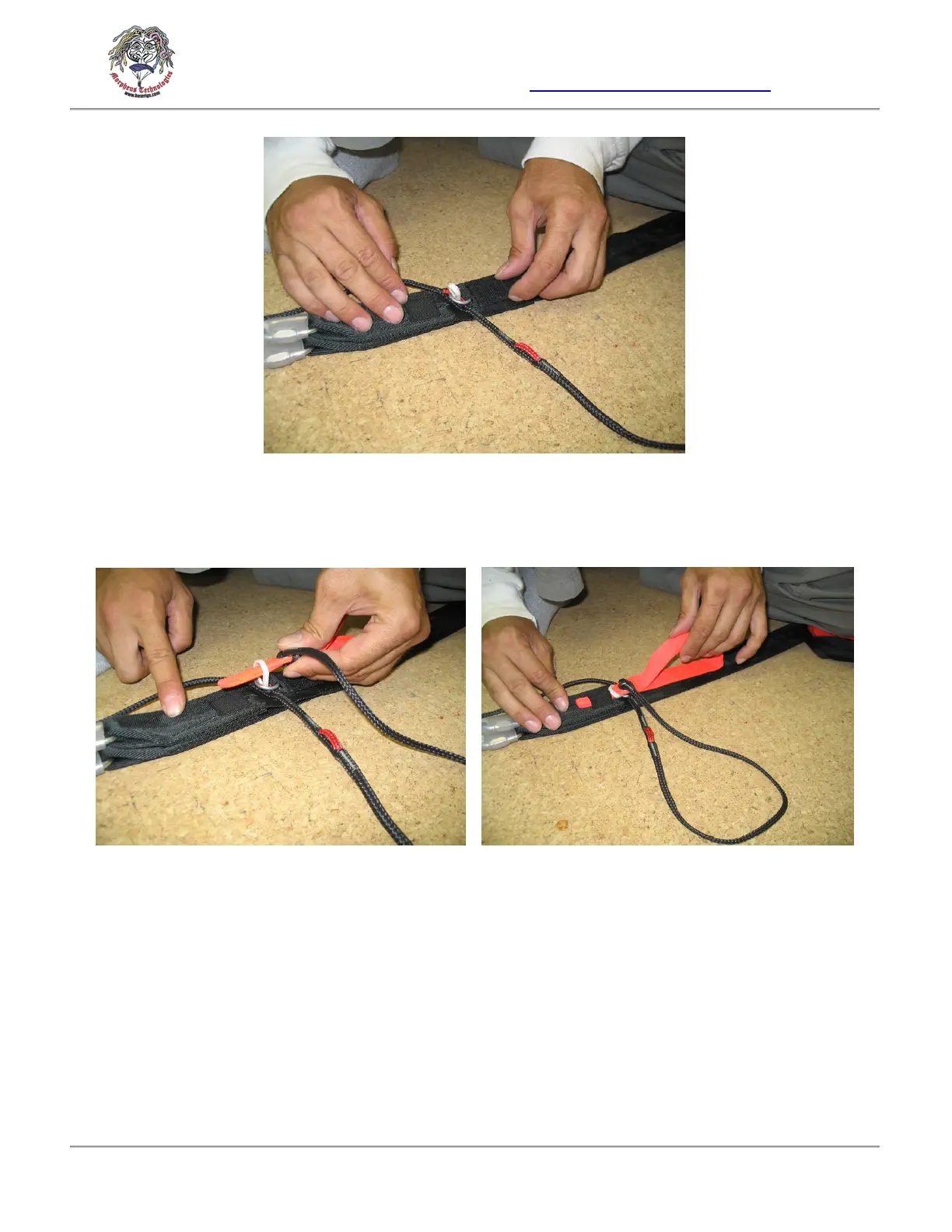 Figure 3: Put the top of the toggle through the white loop on the riser and stow the top of