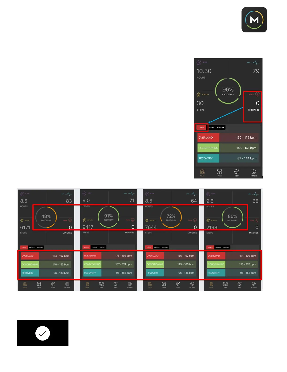 Your daily recovery score will dictate your daily heart rate zones.