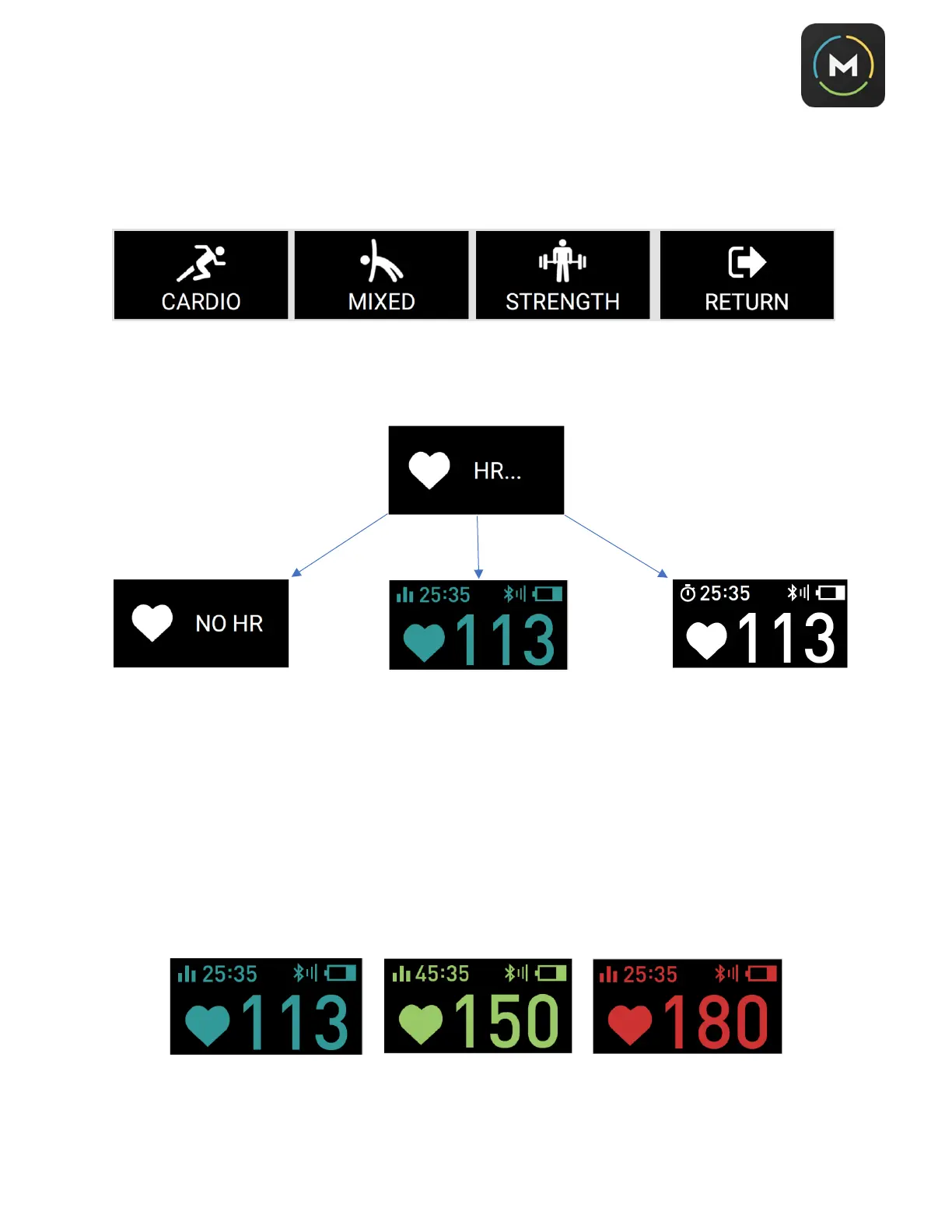 5. After you have confirmed your heart rate monitoring device, now it’s time to train. You will see one of