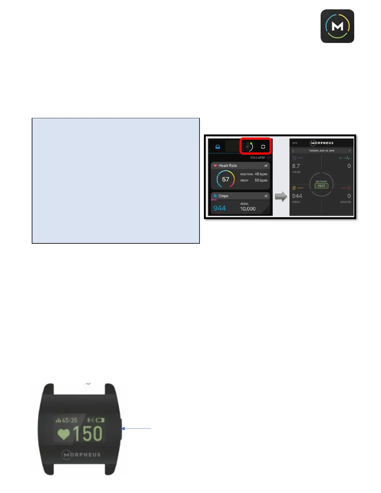 tracking settings. This allows you to set an alarm directly within the Morpheus app to calculate your