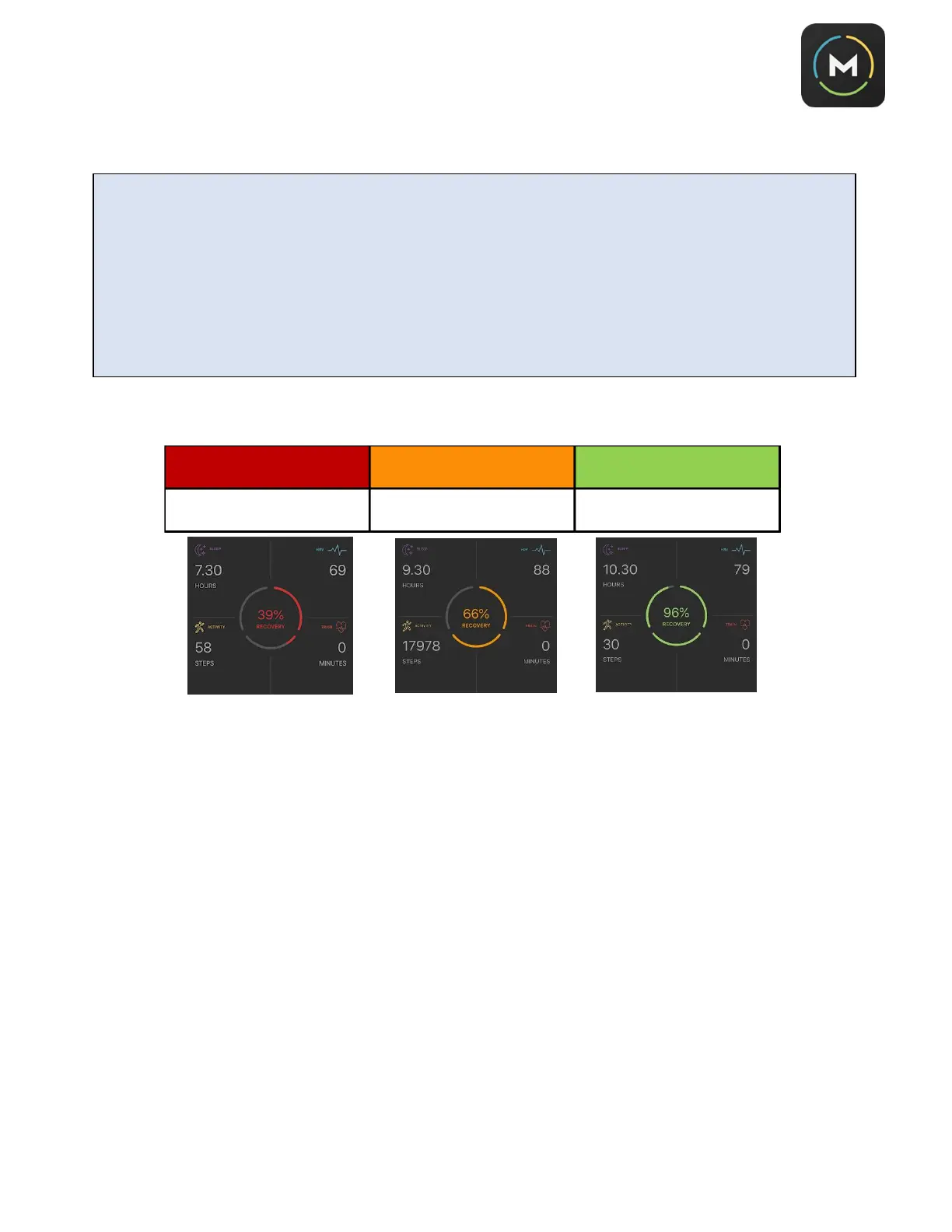 variables. Sleep amount and quality along with the previous day’s training session (it looks at the post-