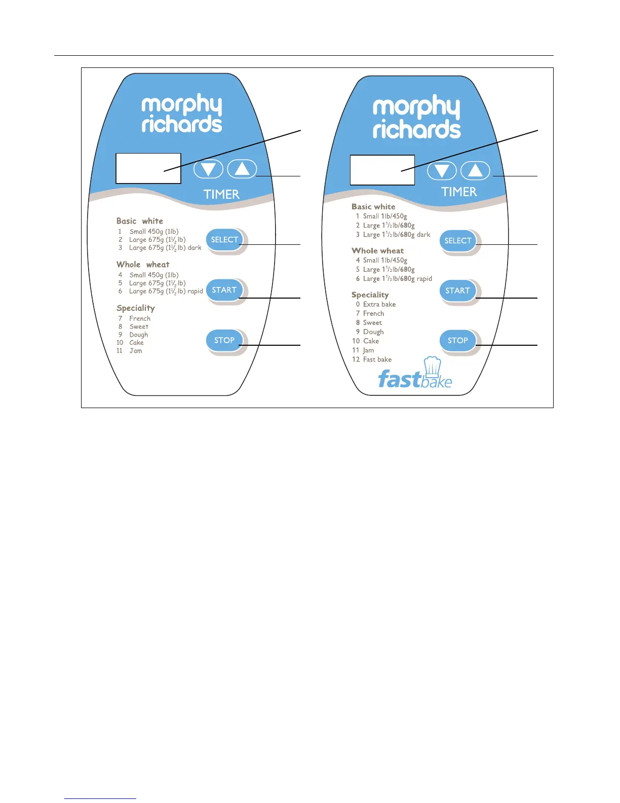 • Shows minute-by-minute baking time countdown.