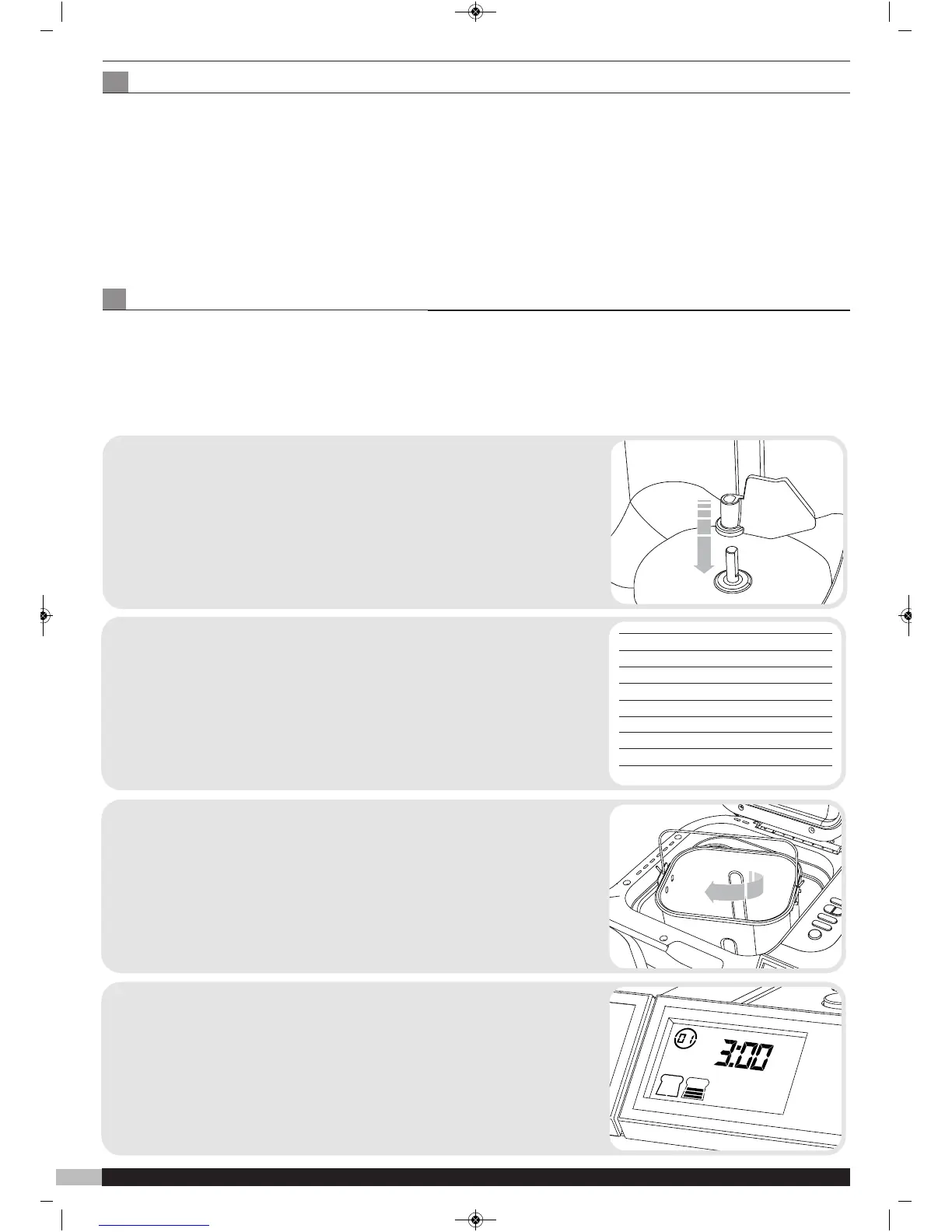 the breadmaker, turning the pan clockwise to lock it into place. Then close