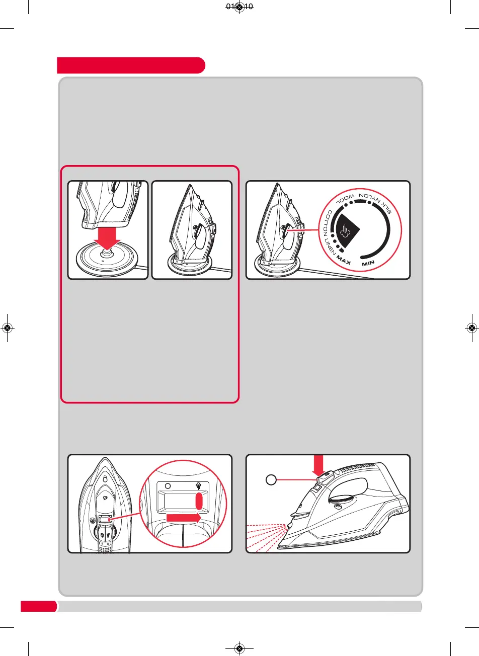 4) Switching on the steam 5) Using the water spray