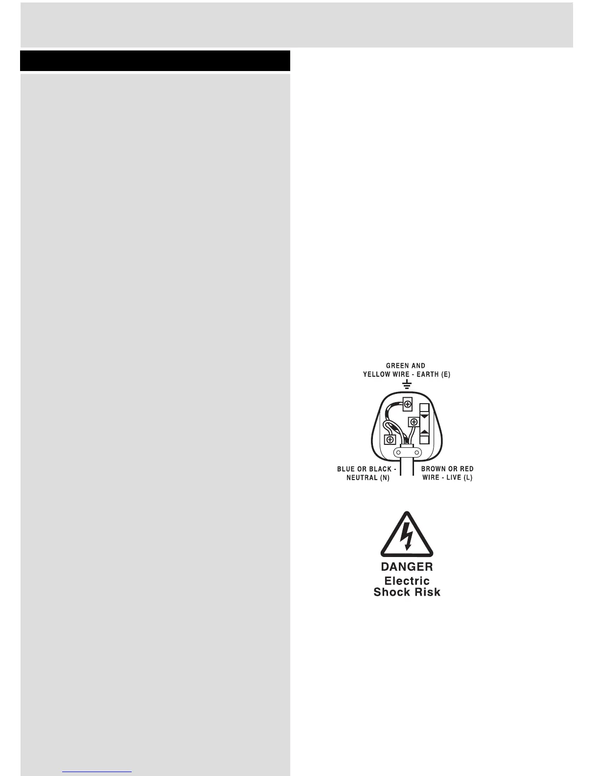 Important: The wires in the mains lead are coloured in