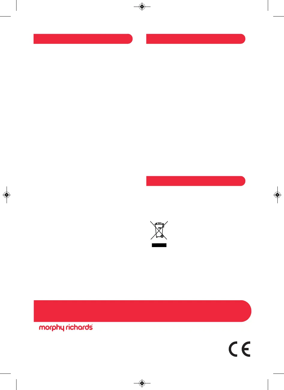 or write to Morphy Richards at the address shown.