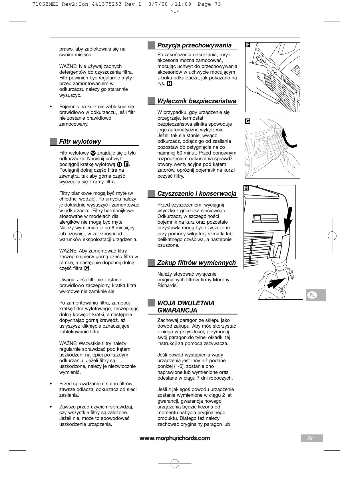 odkurzaniu. Jeżeli filtry są
