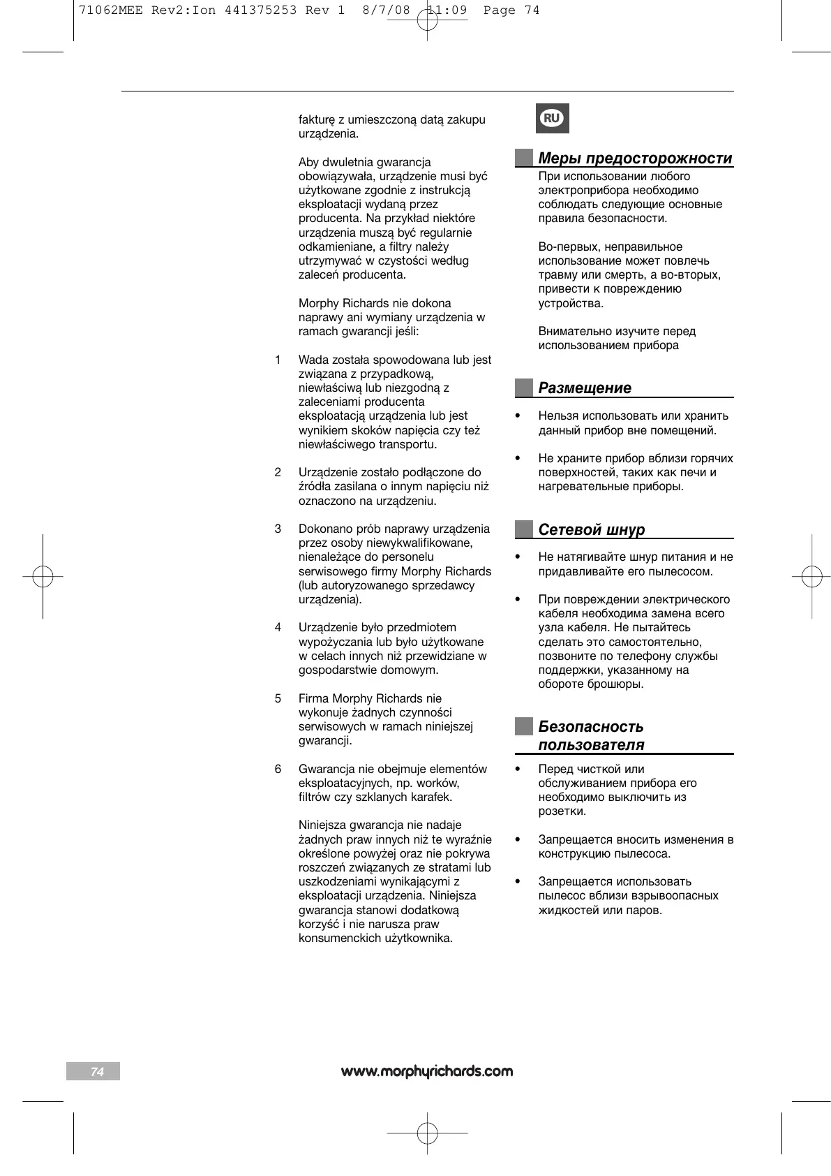 71062MEE Rev2:Ion 441375253 Rev 1 8/7/08 11:09 Page 74