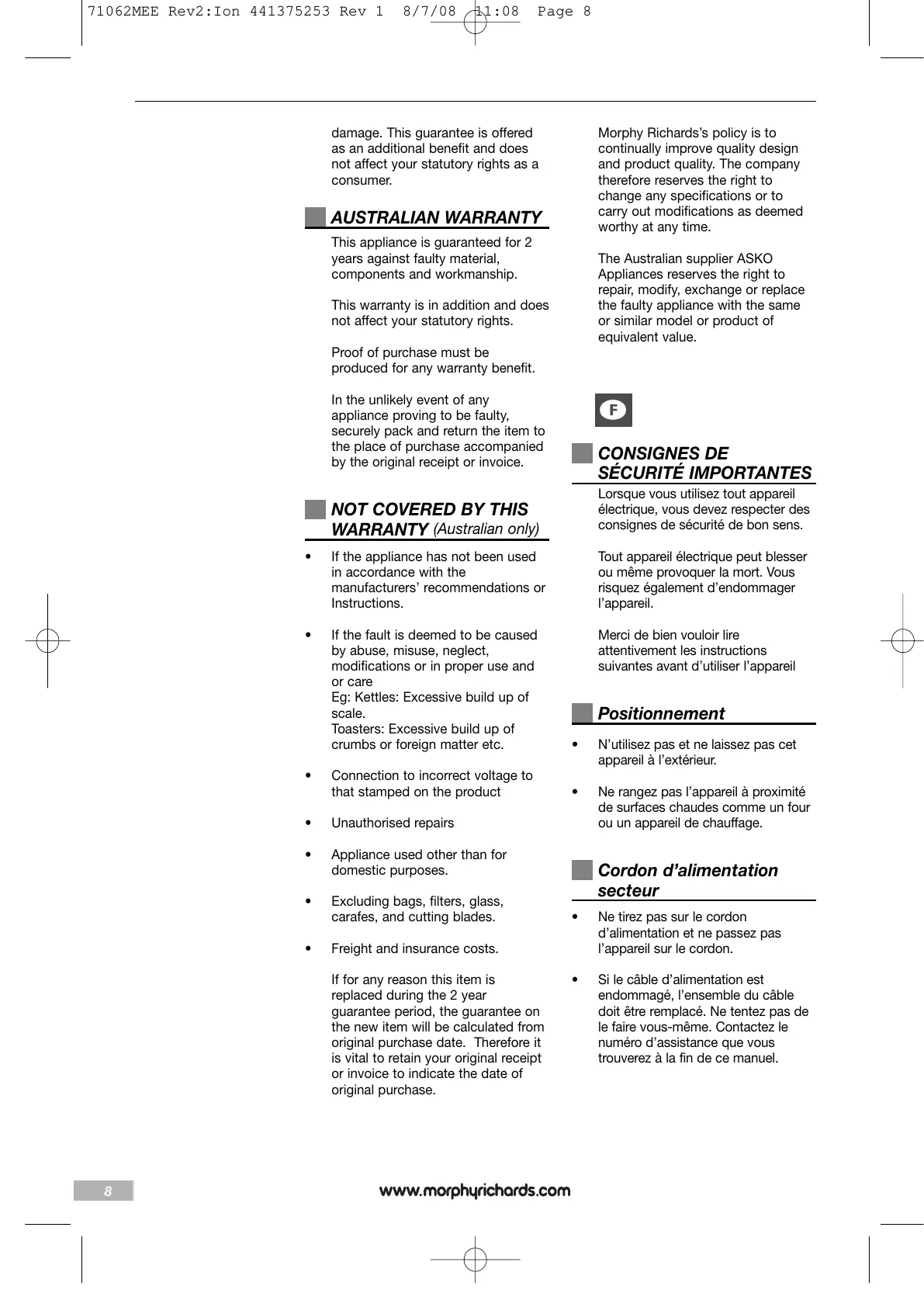 71062MEE Rev2:Ion 441375253 Rev 1 8/7/08 11:08 Page 8