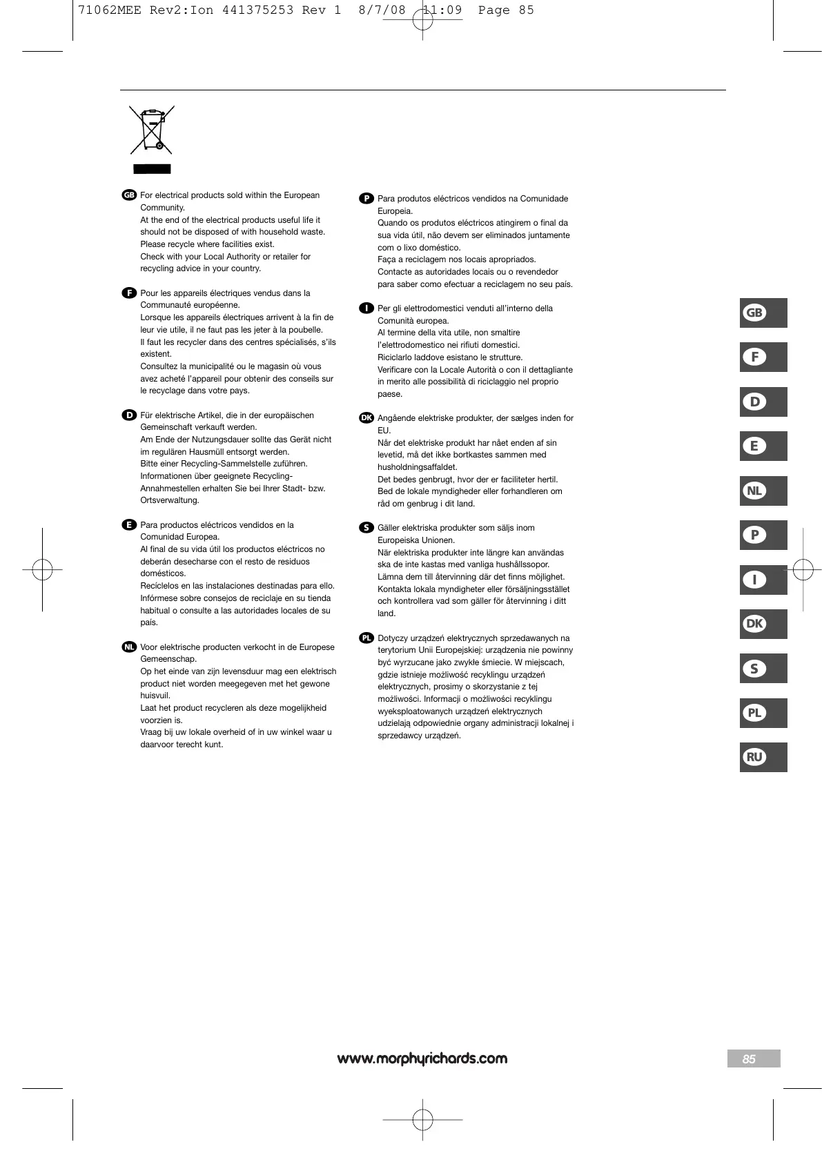71062MEE Rev2:Ion 441375253 Rev 1 8/7/08 11:09 Page 85