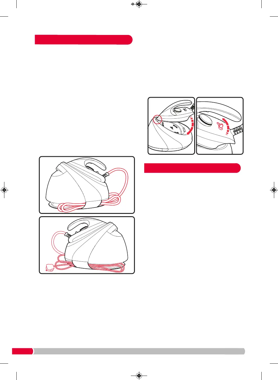rap the power cord and steam supply cord loosely