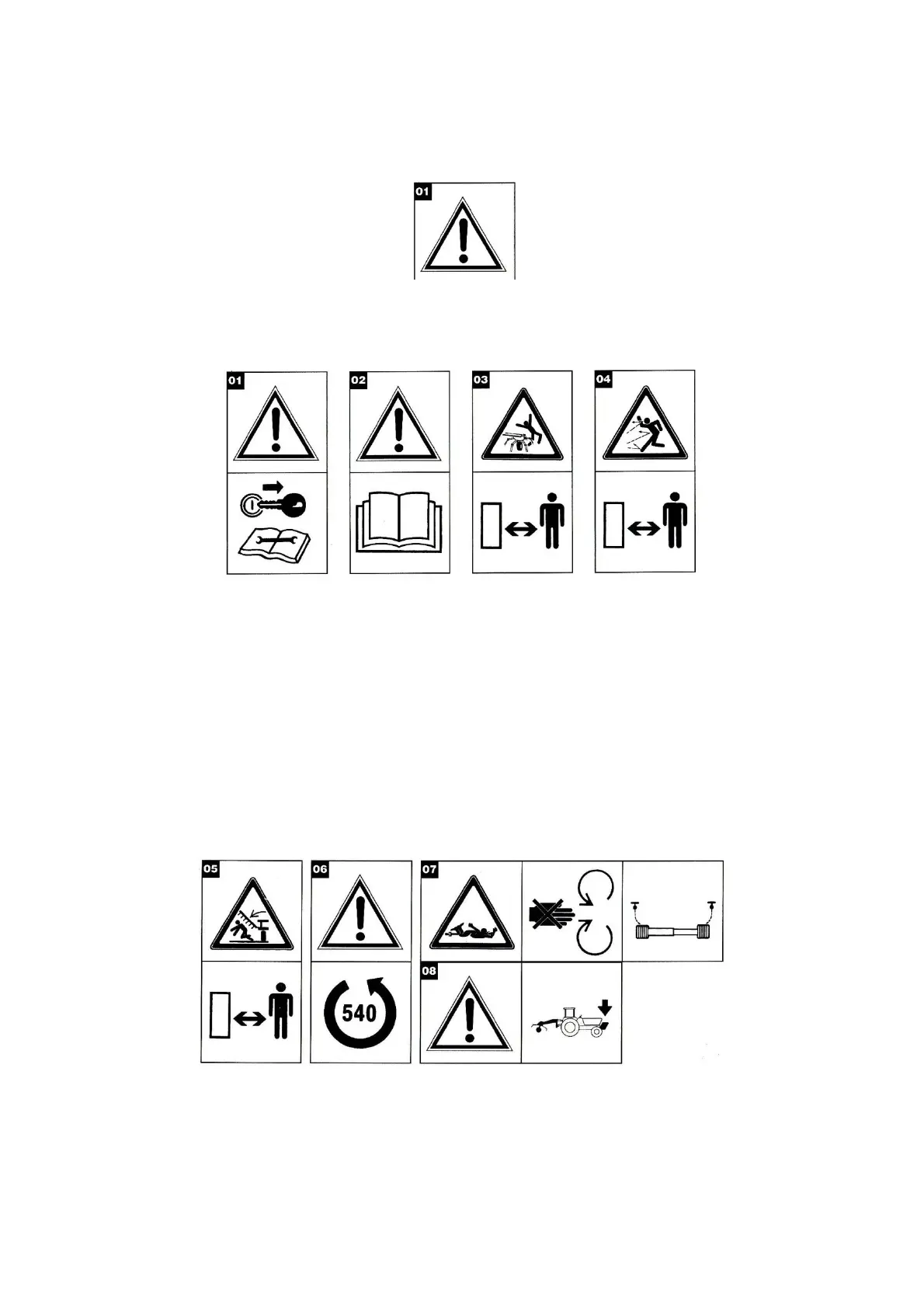 Warning: this signal 01 indicates a hazard and will be used each time either persons and/or the machine