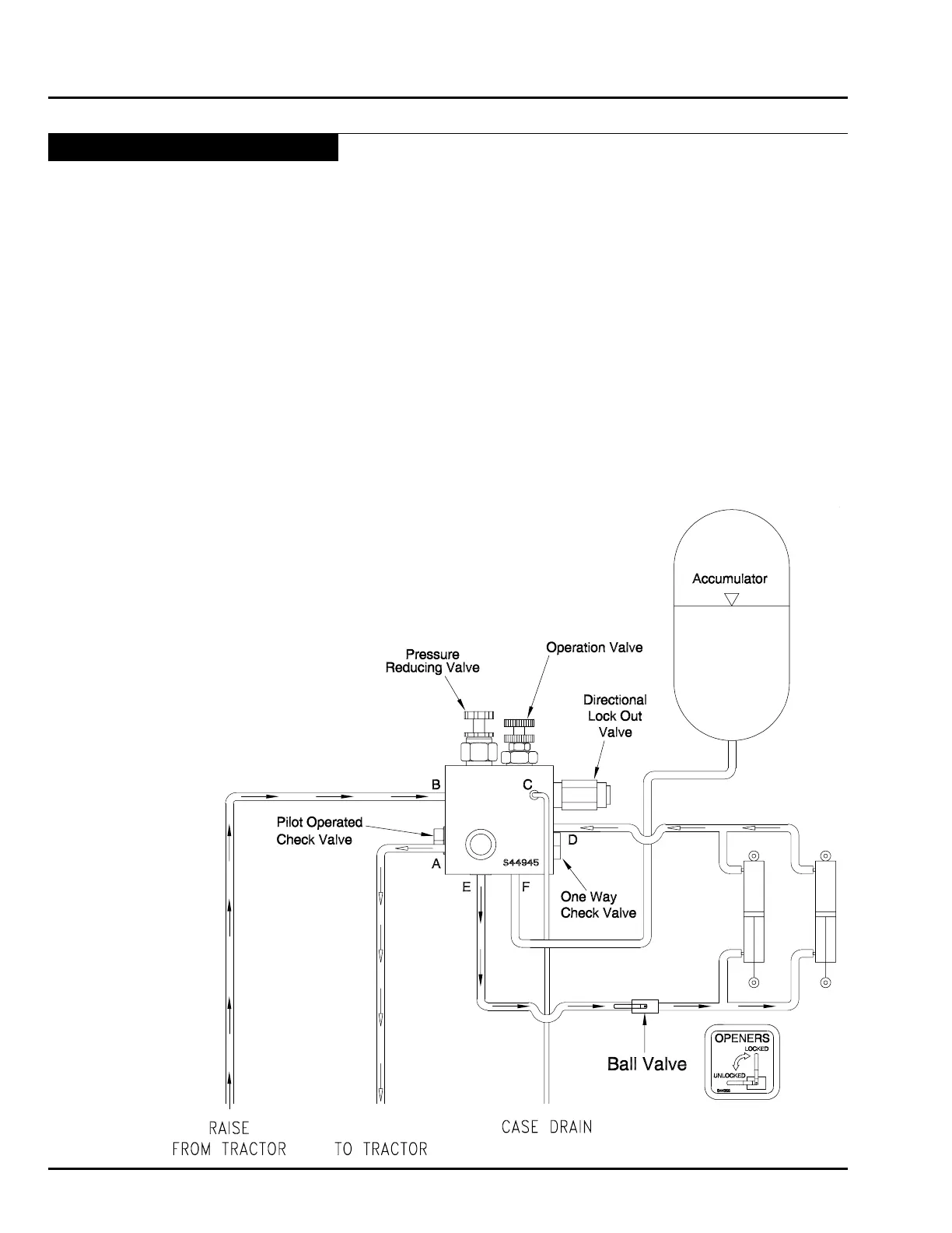 close preventing the oil in the accumulator from returning back to the tractor. The directional lock out valve maintains