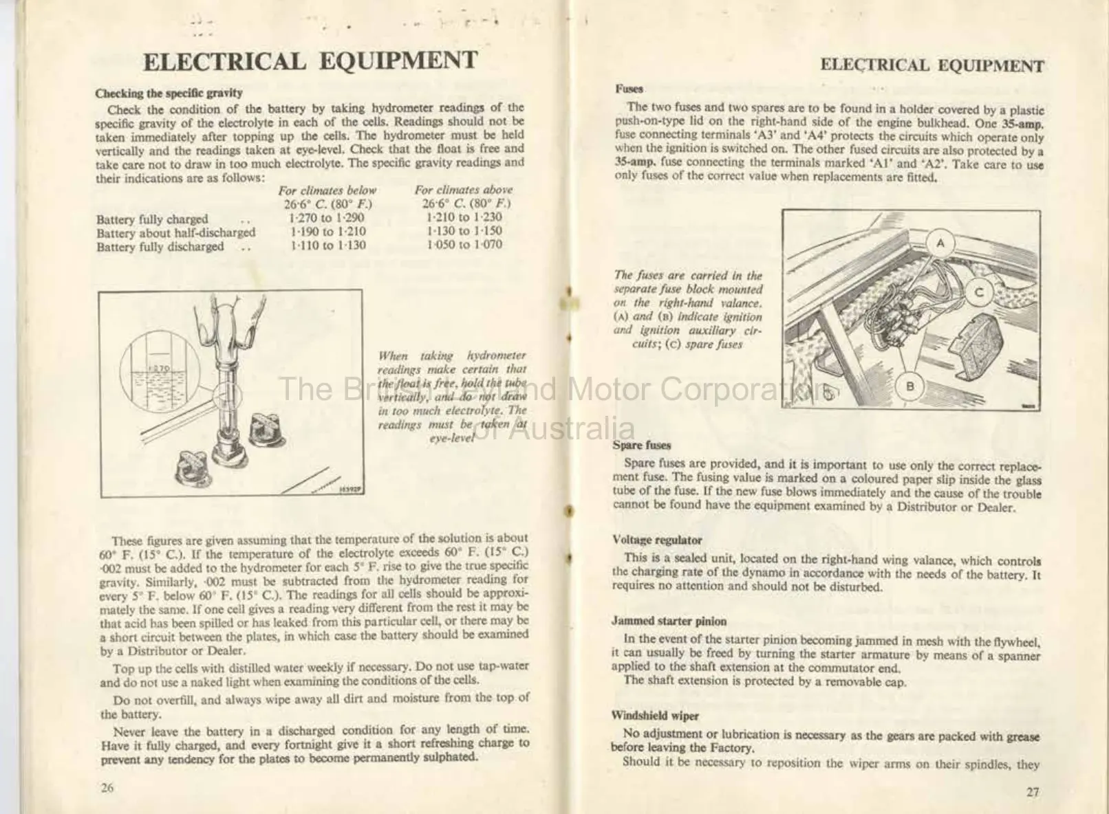 Morris MINI-MINOR - ELECTRICAL EQUIPMENT; Battery Maintenance and Fuses; Electrical Component Checks