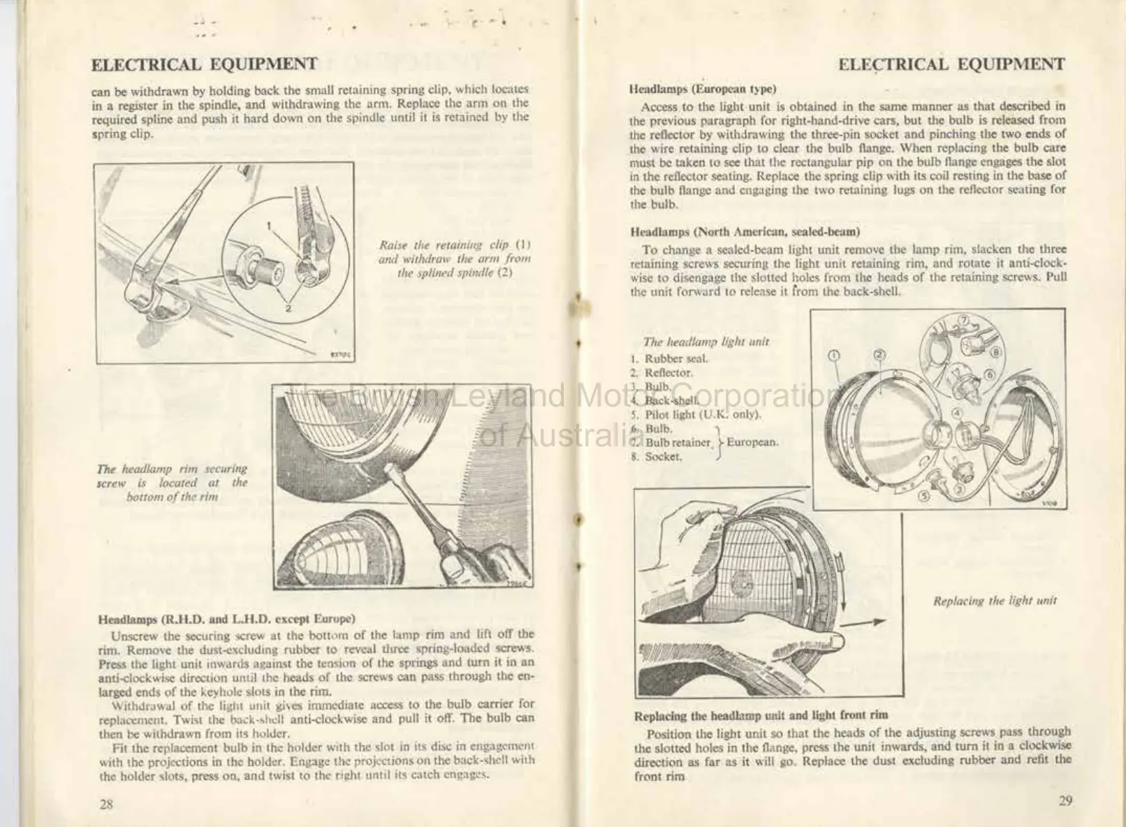 Morris MINI-MINOR - ELECTRICAL EQUIPMENT (Continued); Headlamp Servicing and Bulb Replacement