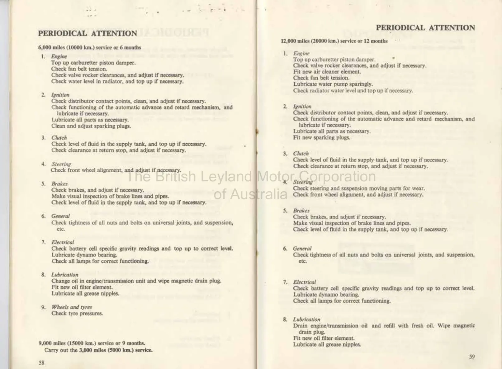 Morris MINI-MINOR - PERIODICAL ATTENTION (Continued); 6,000 and 9,000 Miles Service Schedules; 12,000 Miles Service Schedule